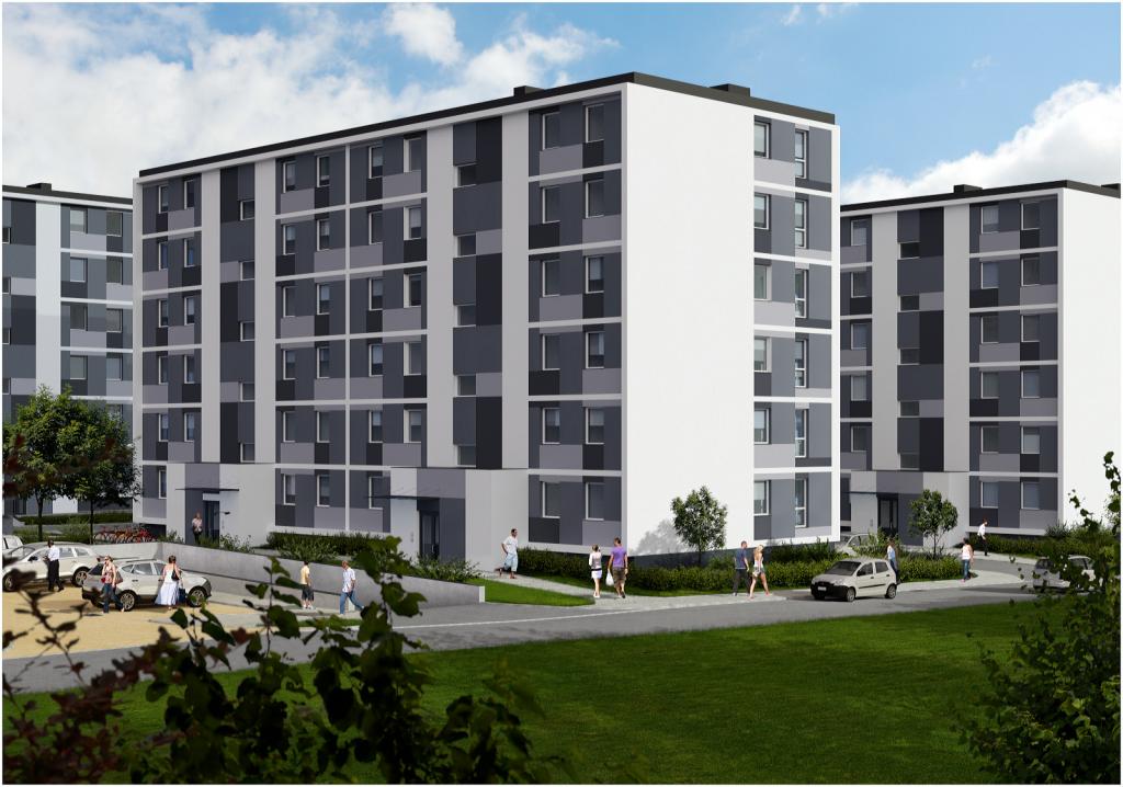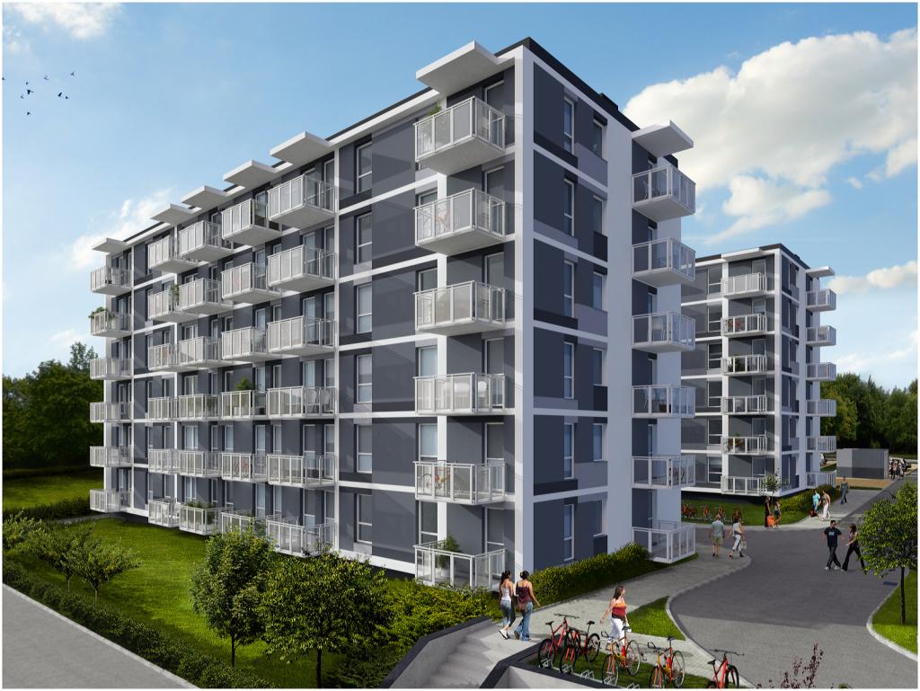 W budynku znajduje się 84 komfortowych i funkcjonalnych lokali mieszkalnych o powierzchni od 28 do 65 m2. Każde z mieszkań posiada zadaszony balkon. Pod budynkiem usytuowany jest wielostanowiskowy garaż podziemny oraz komórki lokatorskie.